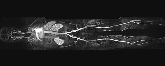 - je nach klinischer Fragestellung zeitaufgelöste MR-Angiographie (4D-MRA) z.B. bei Frage arteriovenöse Fistel/ Shunt oder Darstellung Unterschenkelarterien vor geplanter Bypassoperation.